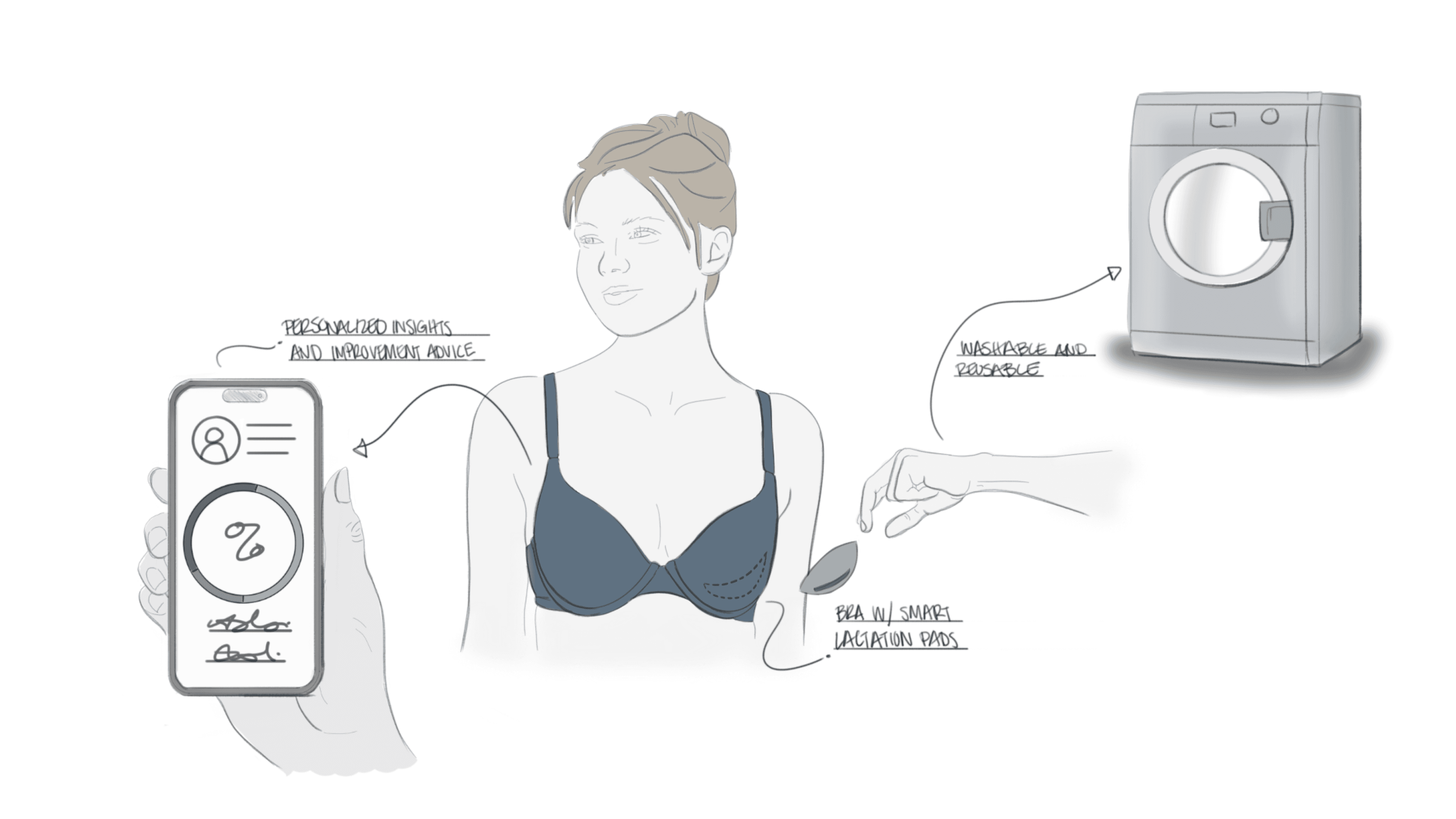 “There, low cost electrochemical sensors get to work, detecting and measuring important health markers in the milk. It’s fusion of everyday comfort and cutting-edge science, designed to give new parents insights into their health and their baby’s, without adding anything to their already full plates.”