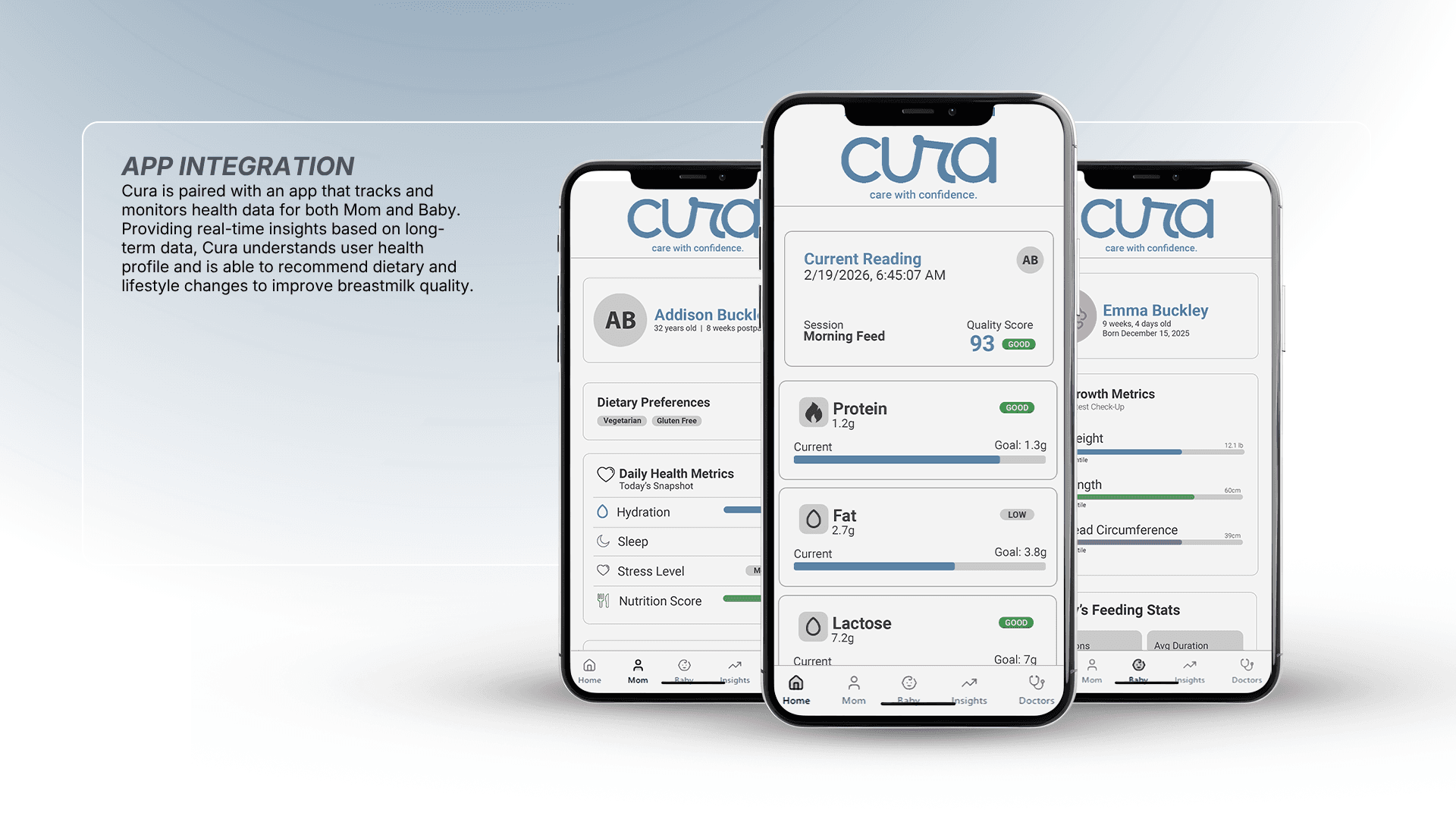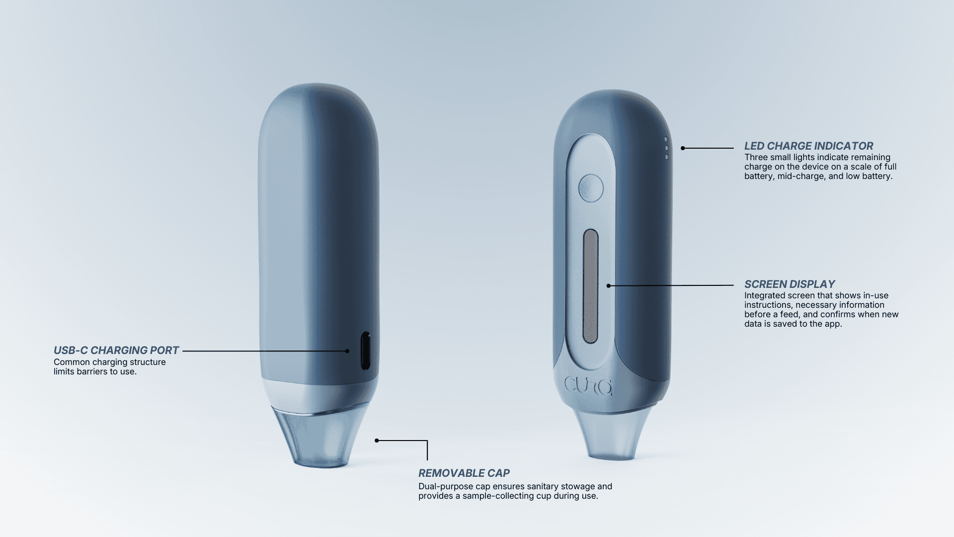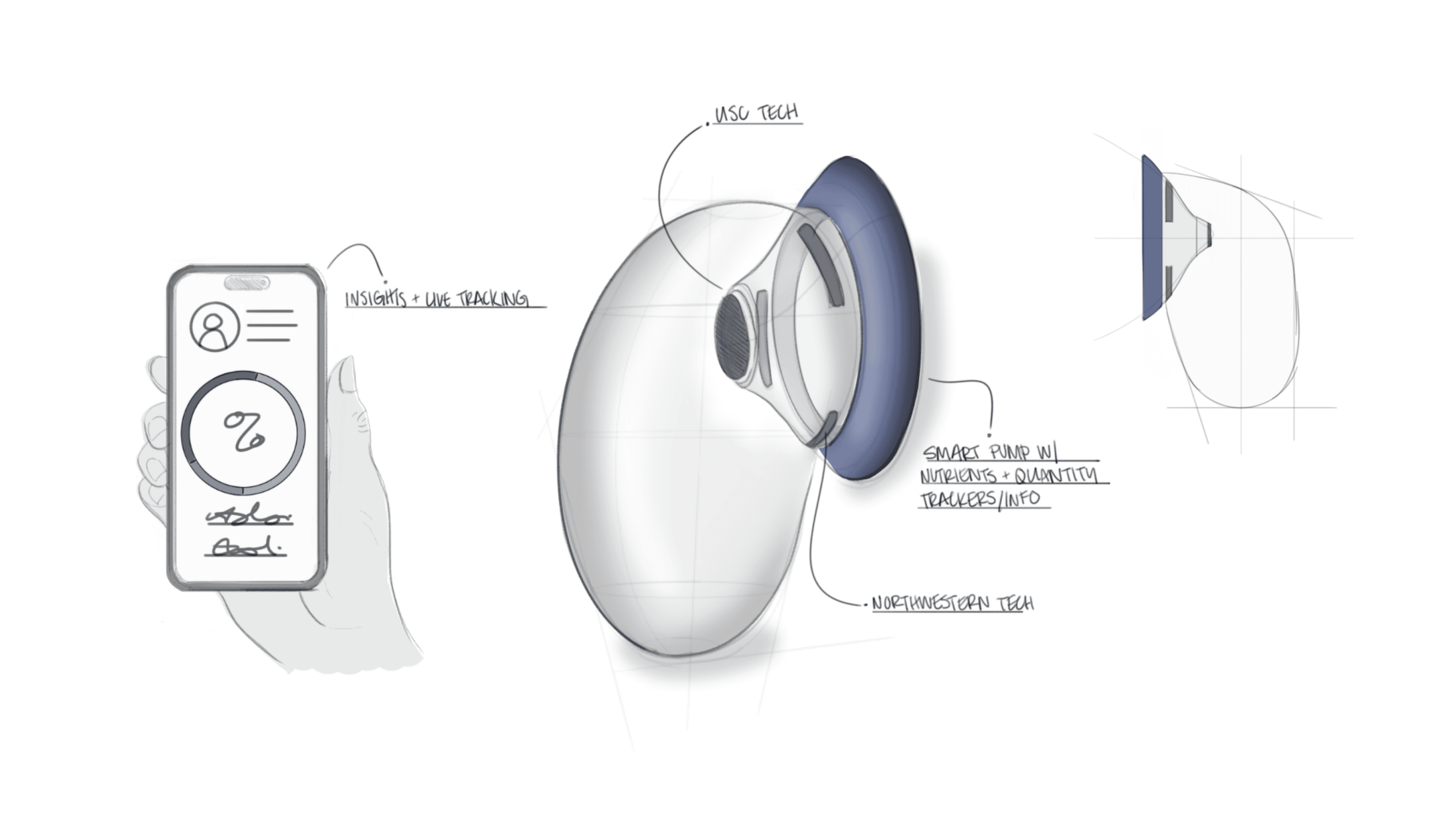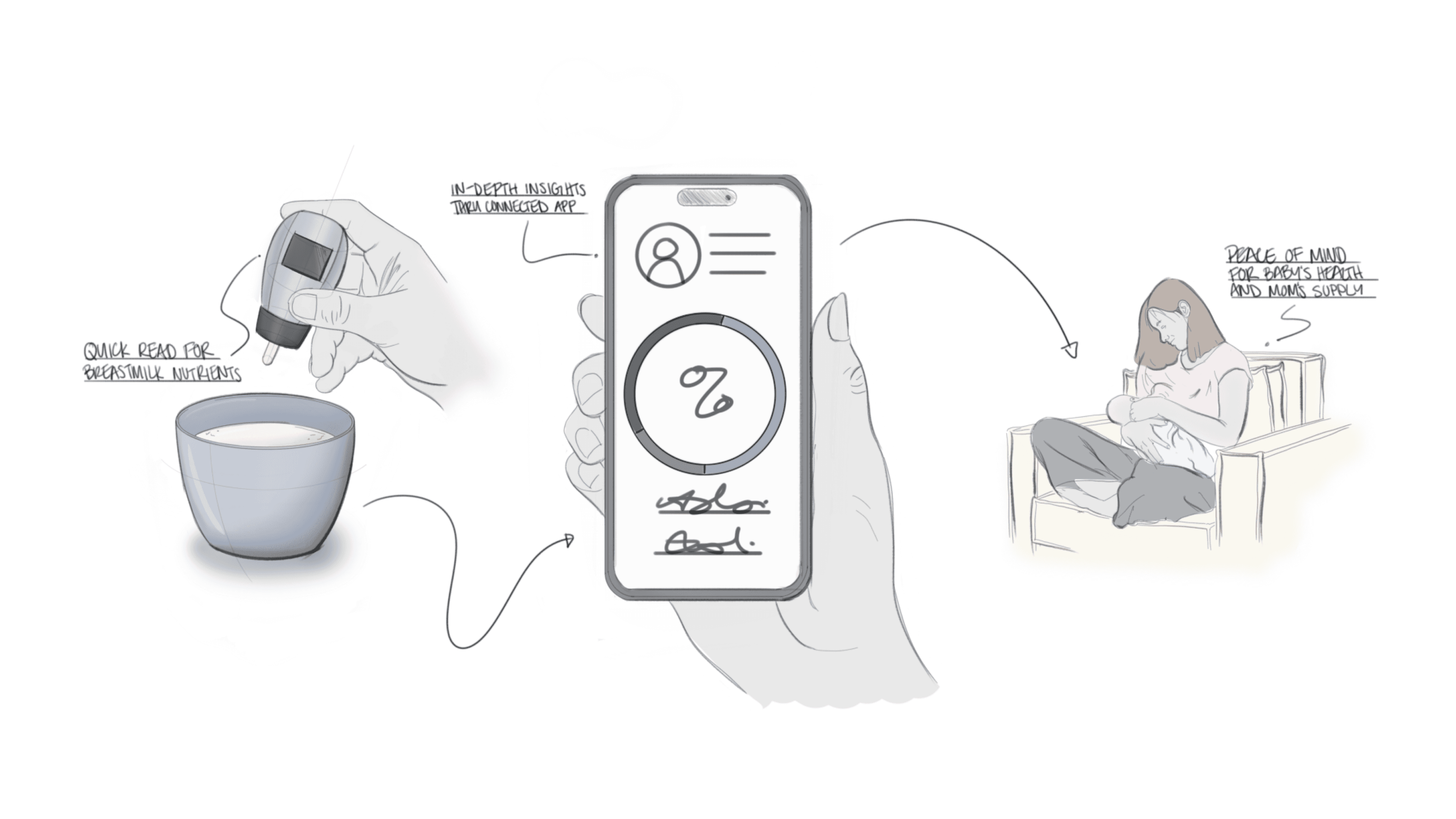 Glucose reader style device intended to measure the nutrients of a breastmilk sample before feeding. USC Engineering lactation sensing technology paired with an app for quick insights.